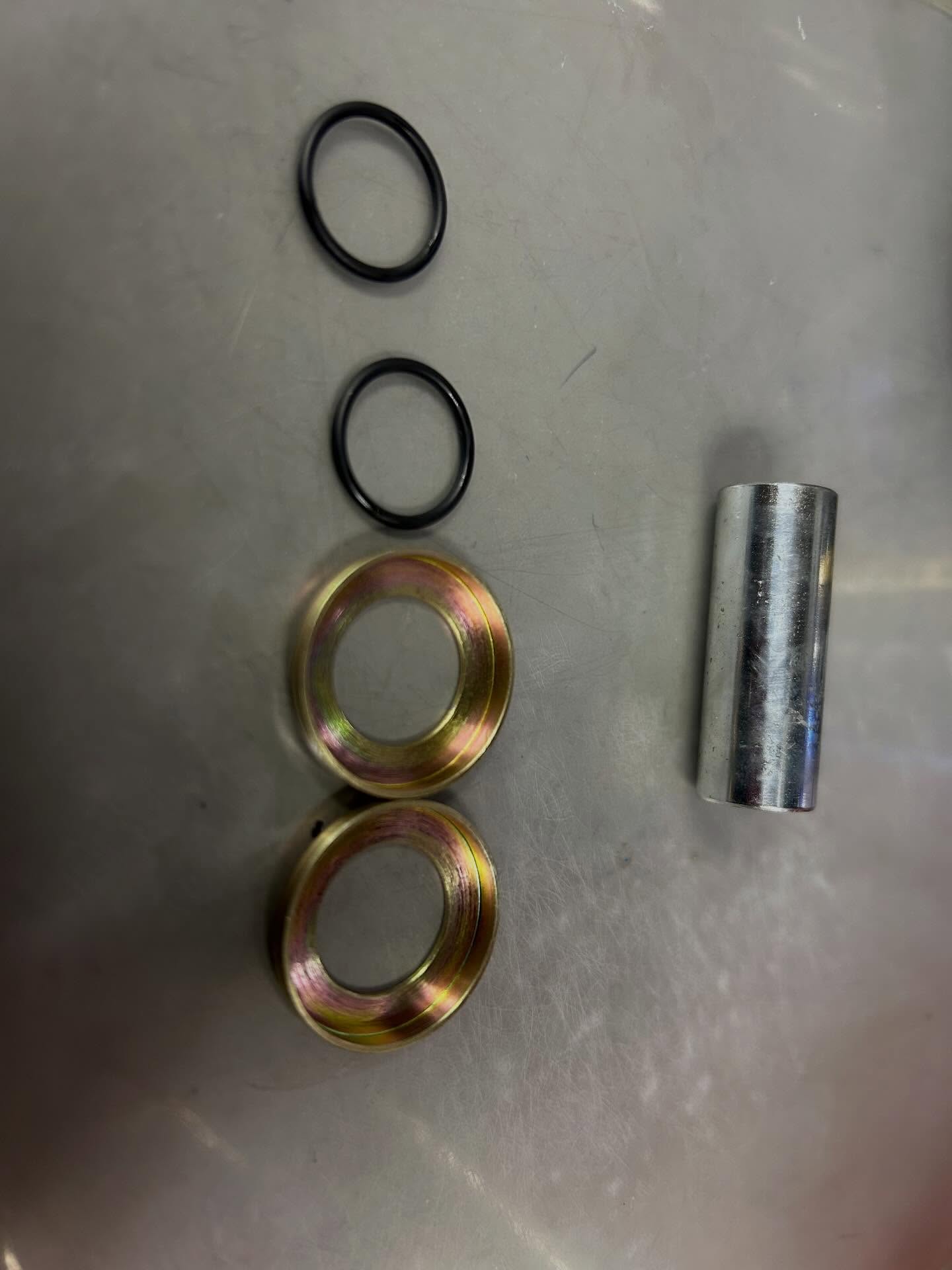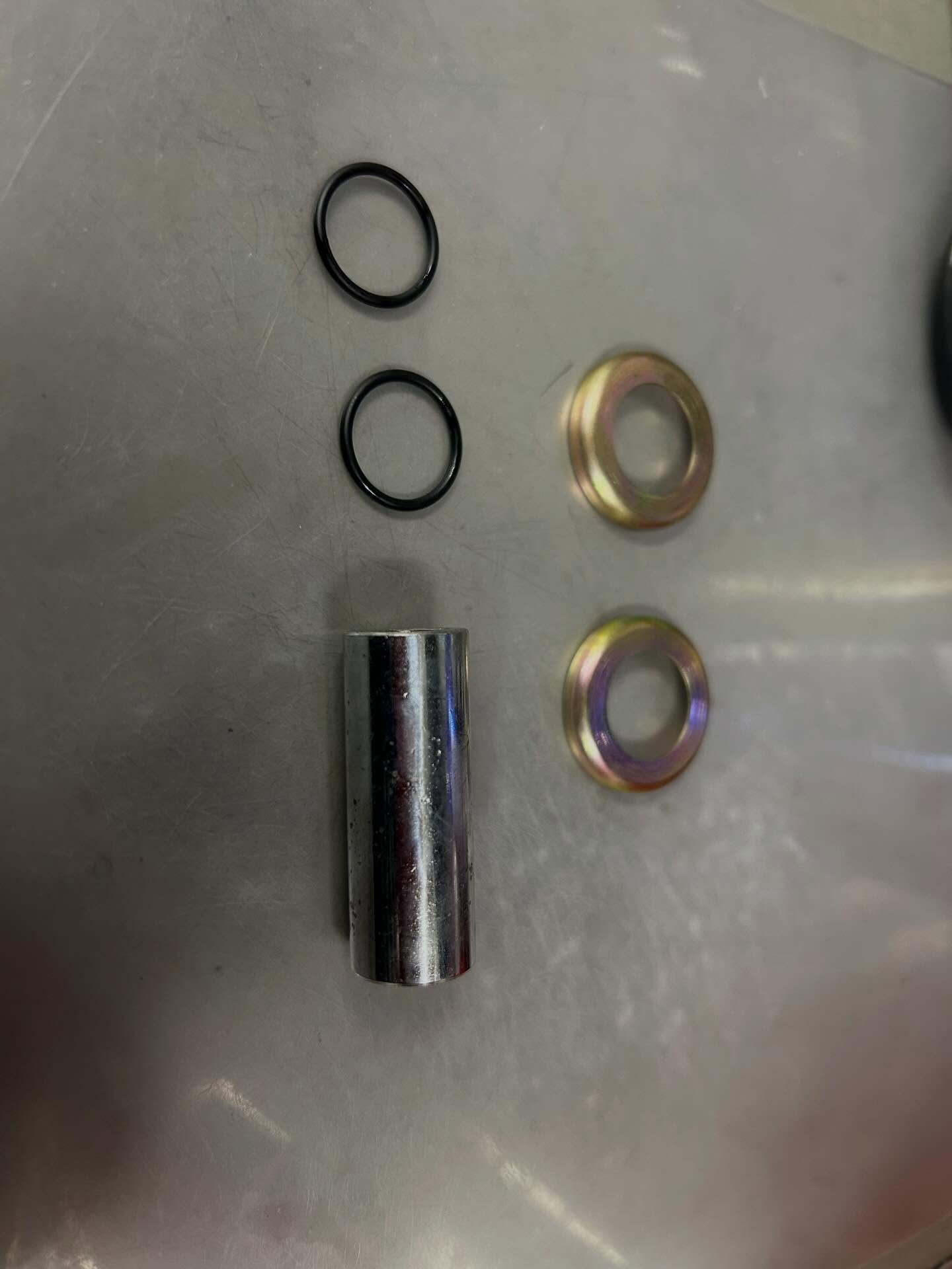 廃盤部品、リアサス取り付け時必要な部品となります。ブッシュメタル、キャップ、Oリングのセットになります!意外と必要で無いので作りました!